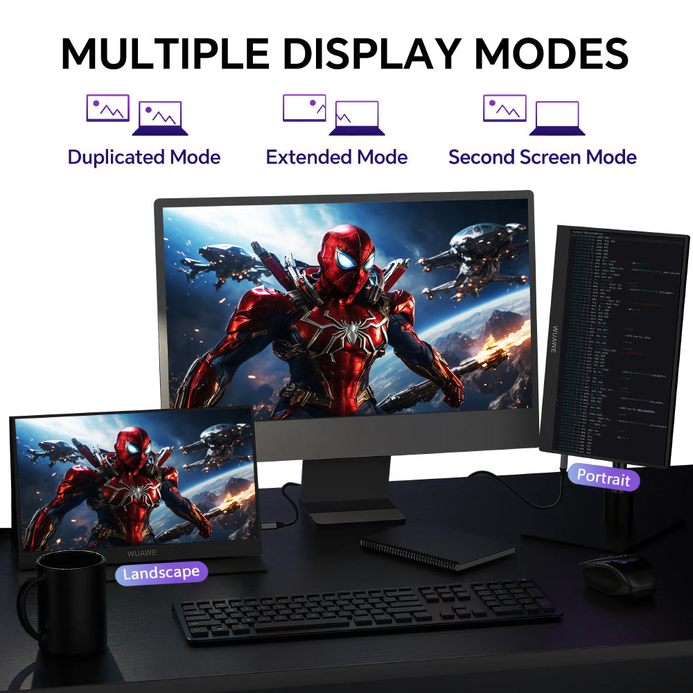 - Plug & Play: Connect via USB-C or mini HDMI for power and display signal transmission. Compatible with laptops, PCs, smartphones, MacBooks, PS4/PS5, Xbox, and Switch. (Note: Thunderbolt 3.0 or USB 3.1 Type-C DP ALT-MODE required)